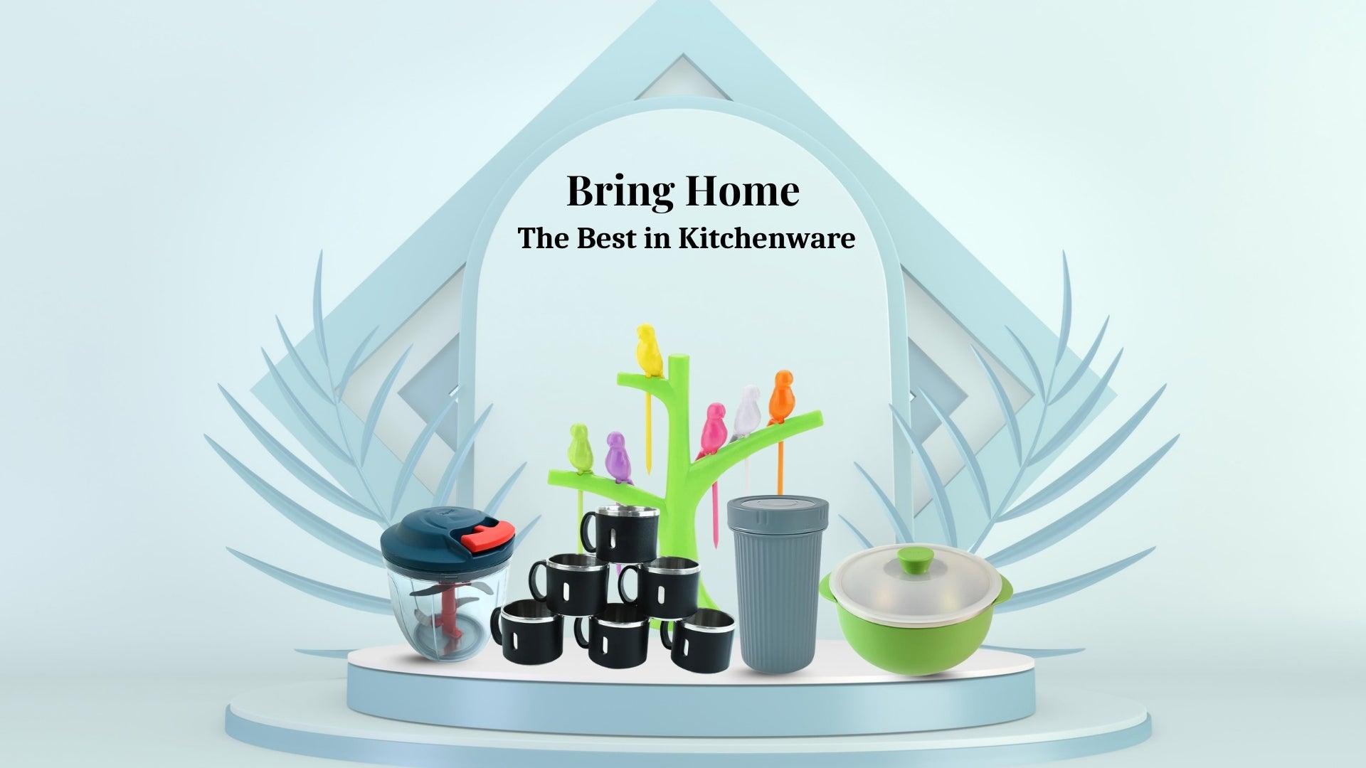 Unibic Ceramic Tea Cups With Plastic Leaf Shape tray / Platter (6 Pcs Set)